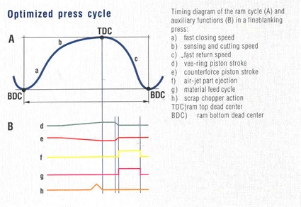 سیکل حرکتی پرس های مکانیکی در شکل زیر دیده میشود و در مورد پرس های هیدرولیکی سیکل حرکتی در شکل زیر ارائه شدهاست.