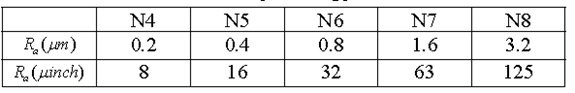 در بعضی مراجع مقدار زبری با علائم استاندارد بیان میشود که این علائم تشکیل شده از حرف N و یک عدد در سمت راست که آن عدد مشخصه زبری است و با افزایش مقدار عدد، زبری زیادتر شده و سطح خشنتر میشود. در جدول (2-3) یک نمونه از آن ارائه شده است